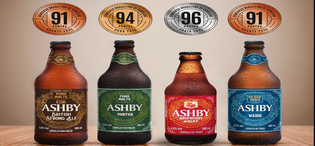 E dois rótulos da Ashby foram contemplados com medalha de bronze no Concurso Brasileiro de Cerveja de Uberlândia (MG): a Ashby Weiss, na categoria South German-style Weizenbock, e a Ashby British, na categoria Extra Special Bitter. Inspirada nas tradicionais receitas da região da Baviera, na Alemanha, a Ashby Weiss é feita com maltes de trigo e de cevada. Além disso, como é comum no estilo, ela não é filtrada – o que a deixa naturalmente turva e acumula leveduras no fundo da garrafa.